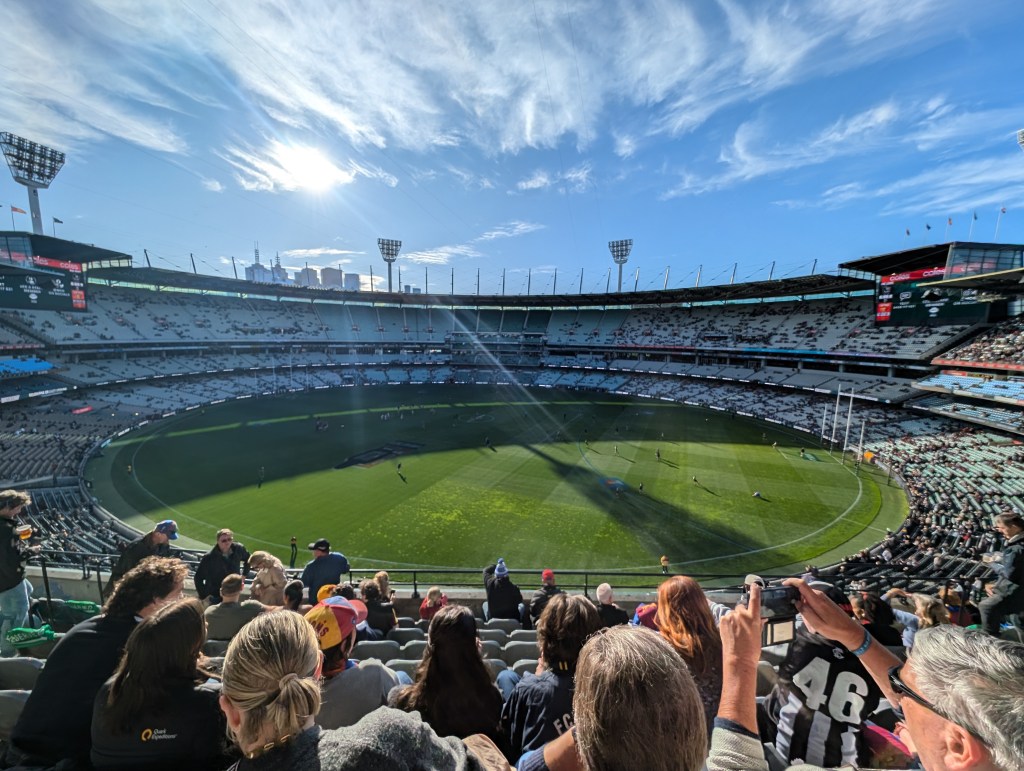 - We attended the AFL game featuring Brisbane versus Collingwood at the iconic Melbourne Cricket Ground (MCG). The atmosphere was electric, buzzing with excitement as fans from both teams filled the stands, proudly wearing their colors and chanting for their favourites. Despite Brisbane’s valiant efforts, they ultimately lost the match, but the spirit of the game remained high. Every play was met with roars and cheers, creating an exhilarating environment.